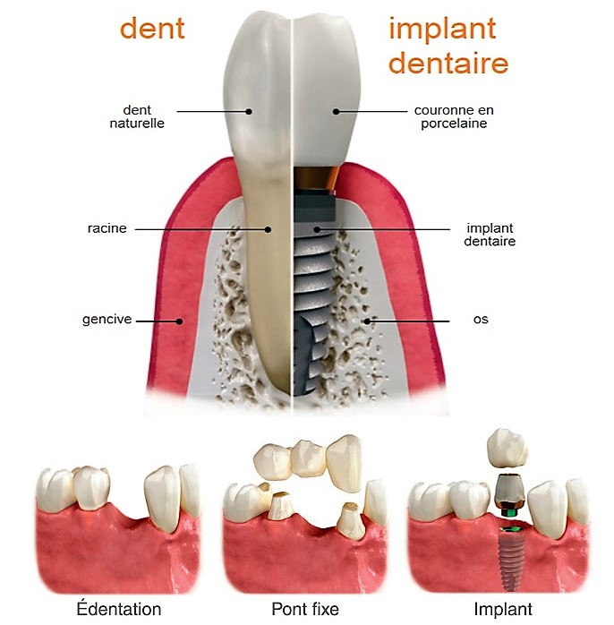 Si malheureusement la dent n’est plus conservable l’implantologie offre une alternative de choix conservatrice des dents adjacentes.
